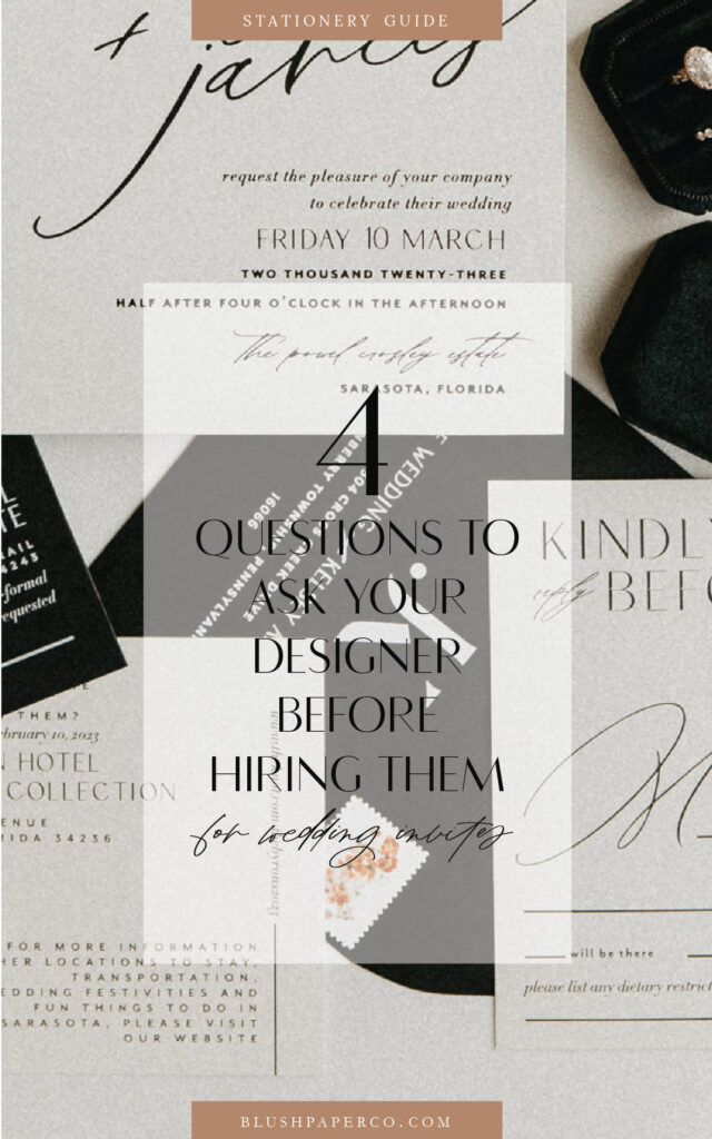 Choosing the right stationery designer is a big deal, and it’s important to make sure you’re in sync throughout the process. Here’s a few key questions to ask before you hire someone (like me!) and before you dive into the creative journey together: