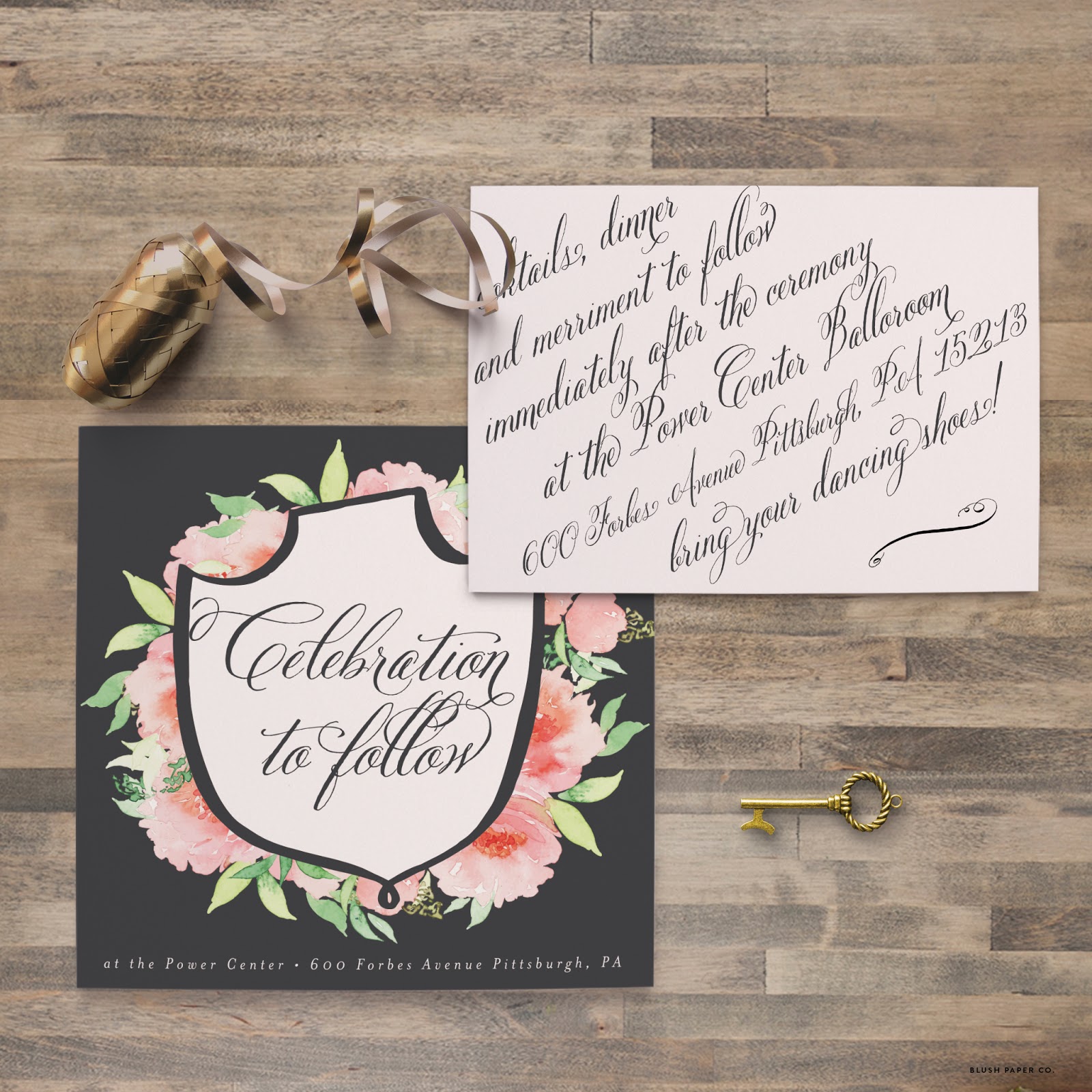 All of the designs featured are shown in full-color flat printing. Our in-house paper is luxe cotton stock and we regularly work with pearl shimmer and linen stock as well. Inquire within for pricing for foil or letterpress pricing.