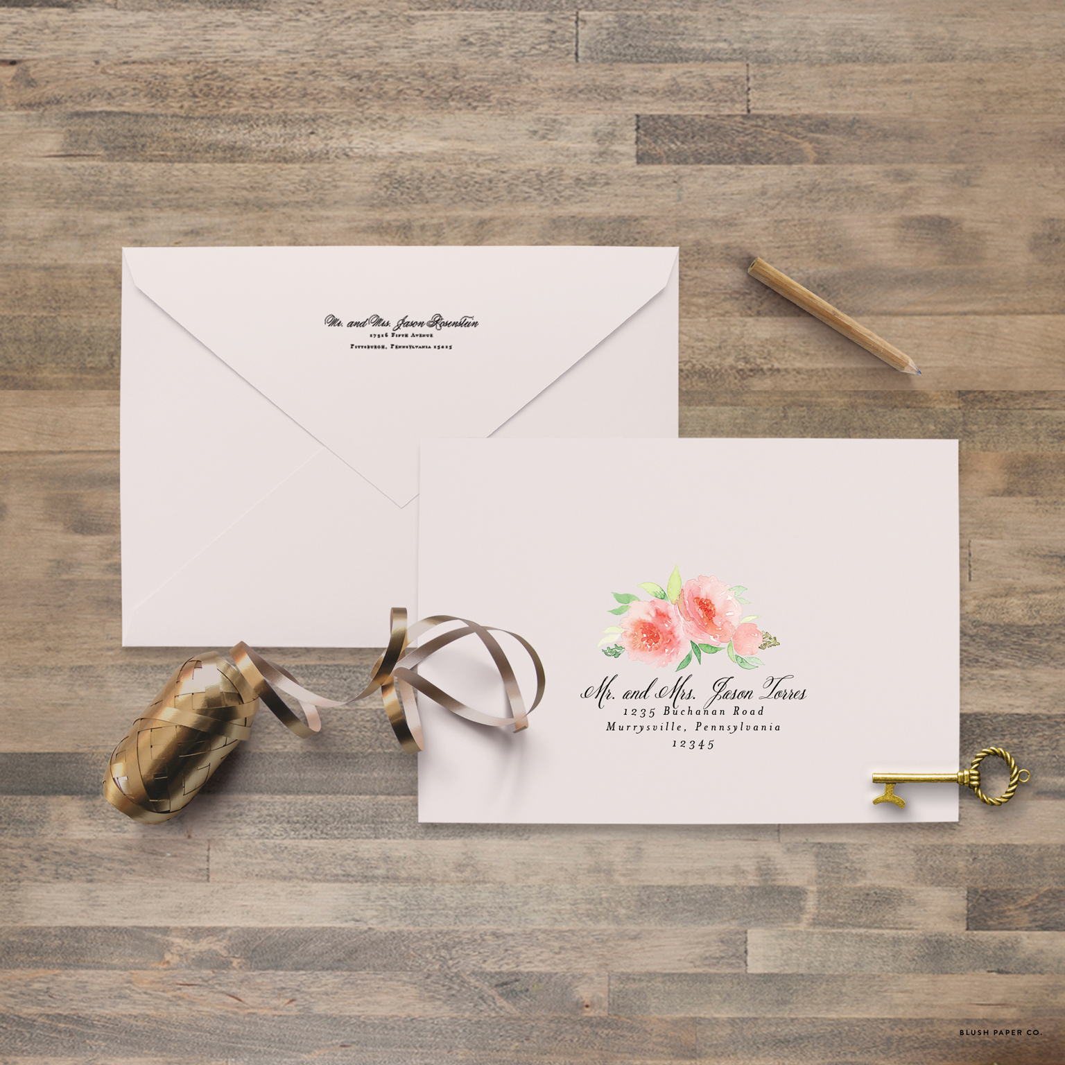 Coordinating return addressing and guest addressing saves so much time and headache! We carry your fonts, colors and theme throughout your entire suite, down to your envelope addressing, so every last piece of your invitation suite has a cohesive look.