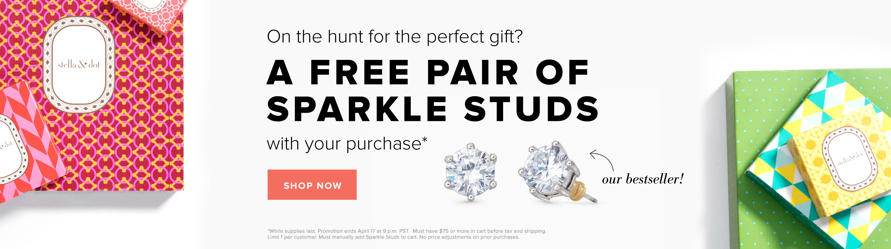 Exclusions: Must have $75 or more in cart before tax and shipping. Limit 1 per customer. Must manually add Sparkle Studs to cart. No price adjustments on prior purchases.