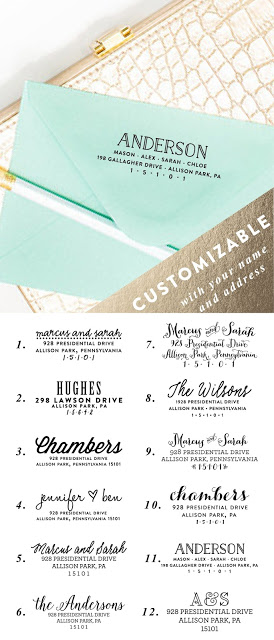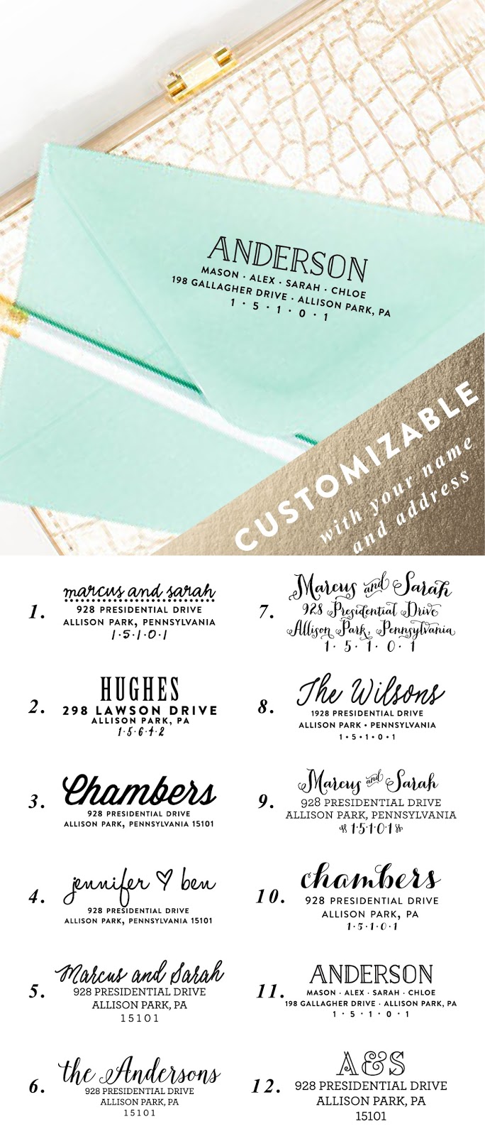 Make addressing all of your envelopes easier by using a personalized return address stamp. A personalized return address stamp is exactly what you need to customize your envelopes and make addressing mail easier! Personalized return address stamps are ideal for wedding invitations, save the date announcements, thank you cards, holiday cards, birth announcements, and make lovely housewarming gifts. Your new address stamp measures 2.5″x1″ and is made of the highest quality, hard maple wood. We offer both traditional wood handle and art mount options for all of our customized stamps. Address stamps can be personalized with your first names, last names, and home address.
