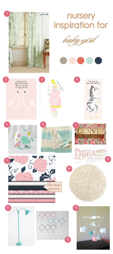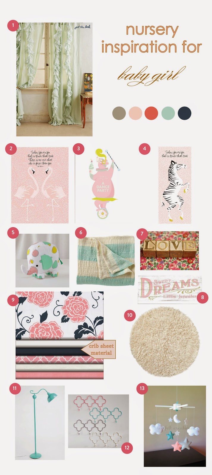 Our plan is to include grey, ballet pink, coral, aqua and navy into the room. I might sneak pops of gold in, too!