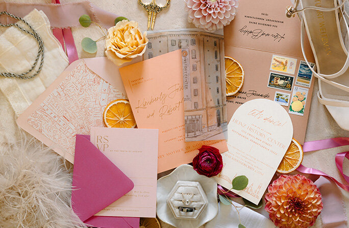 Since 2008, Blush Paper Co has joyfully served 600+ brides from all over the world through thoughtfully and carefully crafted design. Here, discover a curated collection of completed custom designs. Couples shown here booked our Custom Design Experience.