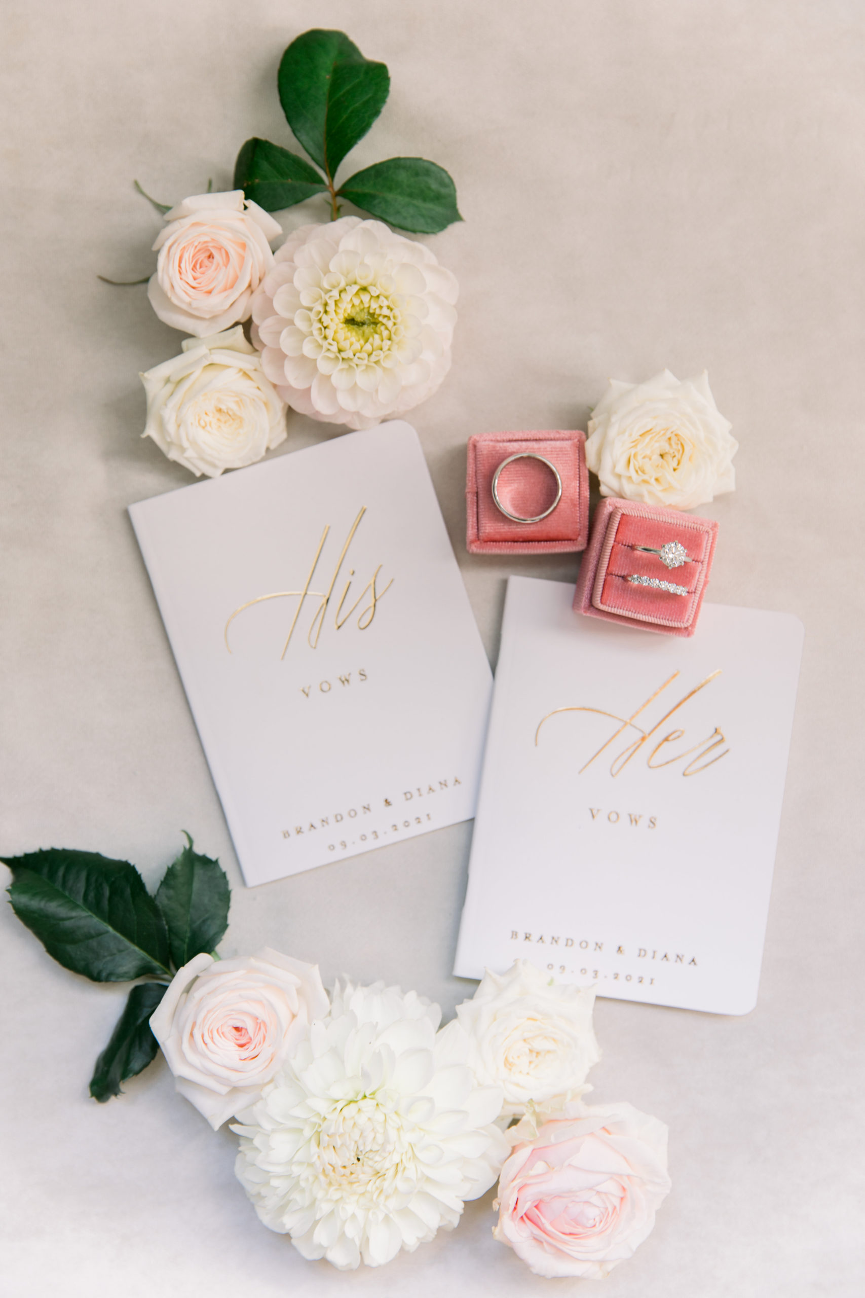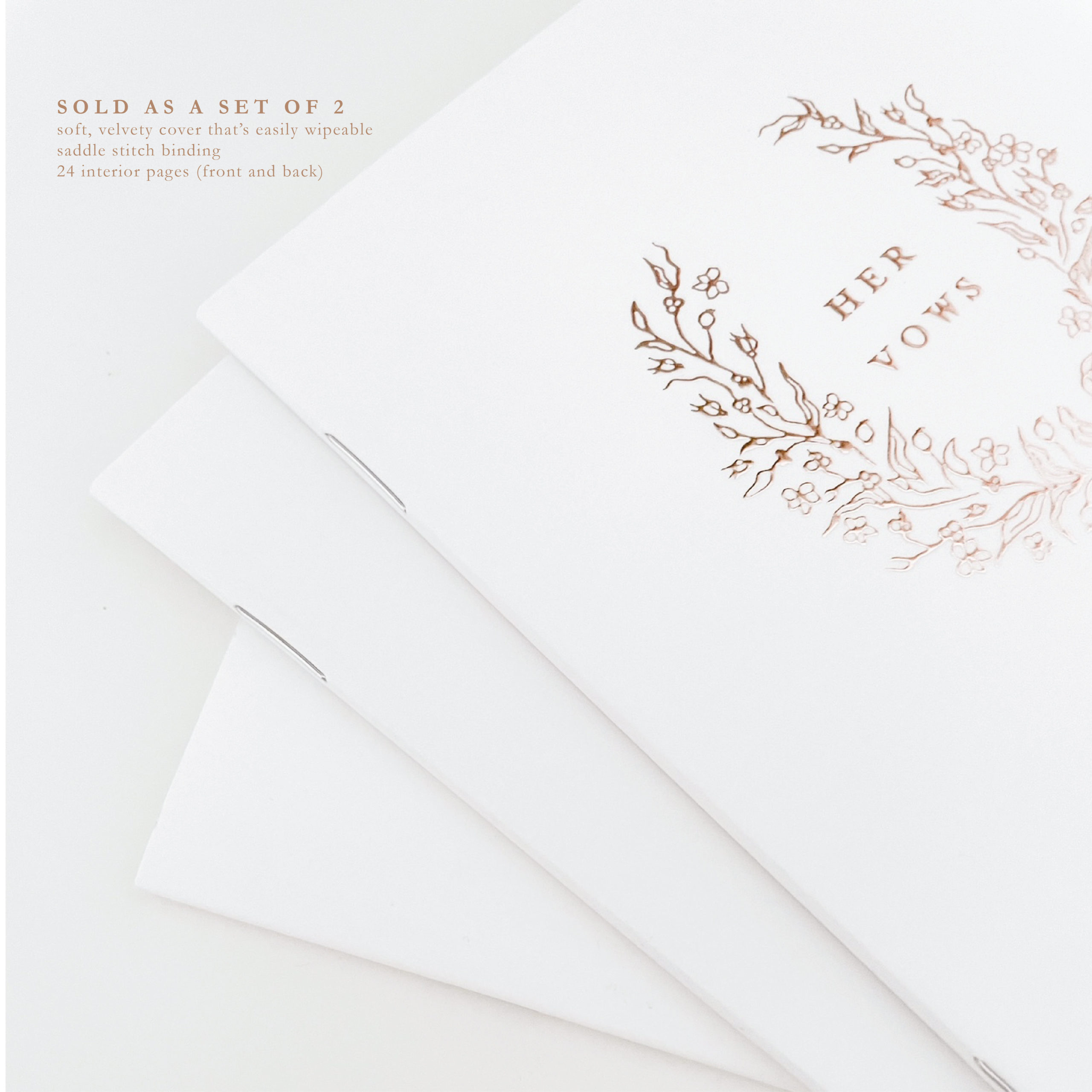 A modern, serif typeface can be personalized with your names and wedding date to create a one-of-a-kind heirloom vow books.
