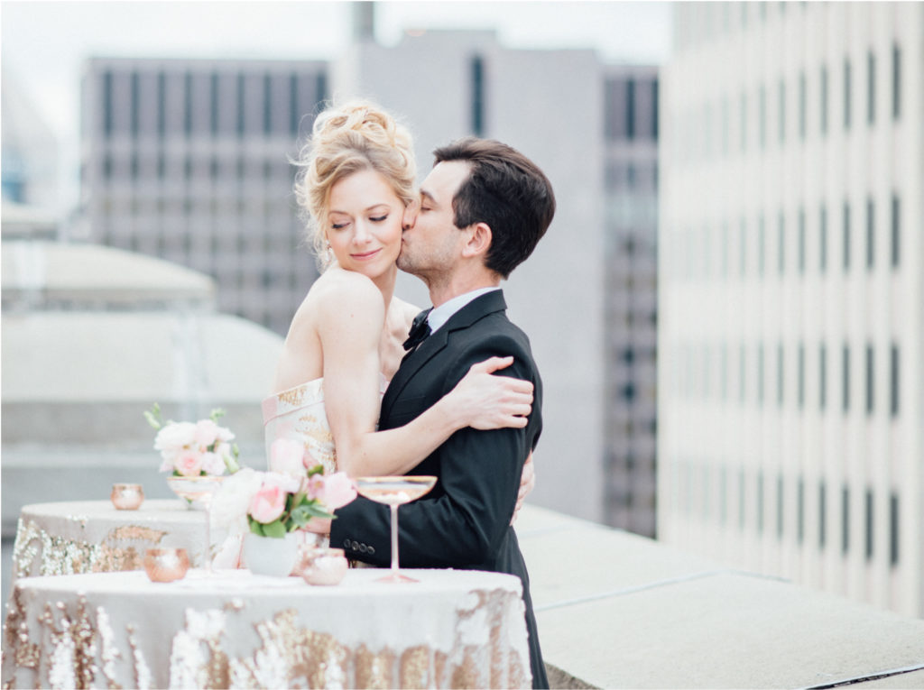 Photography: Eva Lin Photography / Videography: All Heart Photo & Video / Venue: Coterie Company Pittsburgh / Planning: The Event Group / Floral Design: The Farmer’s Daughter / Hair & Makeup: Hannah Conard Beauty / Stationery: Blush Paper Co. / Cake: Mediterra Bakehouse / Cotton Candy: Spun Sugars / Rentals: Event Source / Linen: Mosaic / Gown: Ieena for Mac Duggal Foiled Ballgown / Jumpsuit: ASOS / Shoes: Badgley Mischka